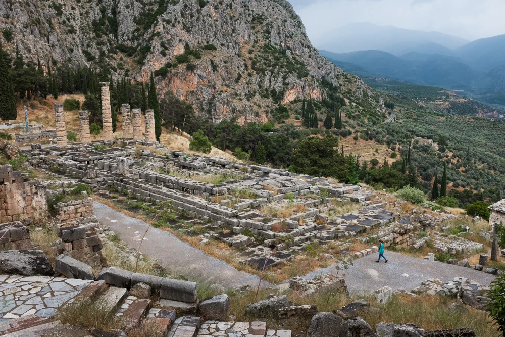 Drove to Delphi today, which was supposed to be a two-hour drive, but I didn't realize that I had 'avoid toll roads' set on my google maps, so yep, it took us 3-1/2 hours to get there -- and driving through Piraeus harbour area is so NOT fun. But the drive was beautiful, even in the rain. We arrived in the afternoon, checked into our hotel and then walked to the Delphi Museum. The rain was NOT stopping us from seeing the Delphi ruins, which were spectacular. After walking through the ruins, we stopped for dinner and back home for the evening.